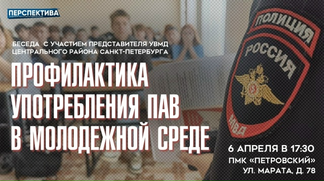 6 апреля в молодежном клубе «Петровский» пройдёт беседа на тему «Профилактика употребления ПАВ в молодежной среде»
