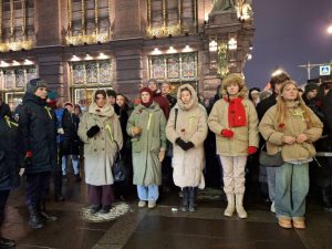 Мы у памятного знака «Блокадный репродуктор» на пересечении Невского проспекта и Малой Садовой