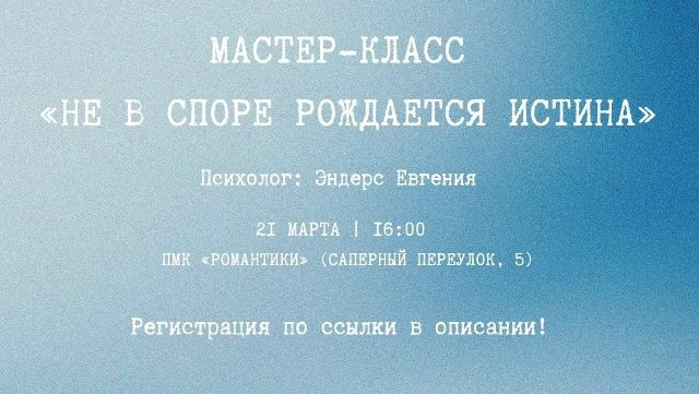 ПМК «Романтики» приглашает на психологический тренинг, который докажет вам, что истина рождается не в споре, а в умении договариваться
