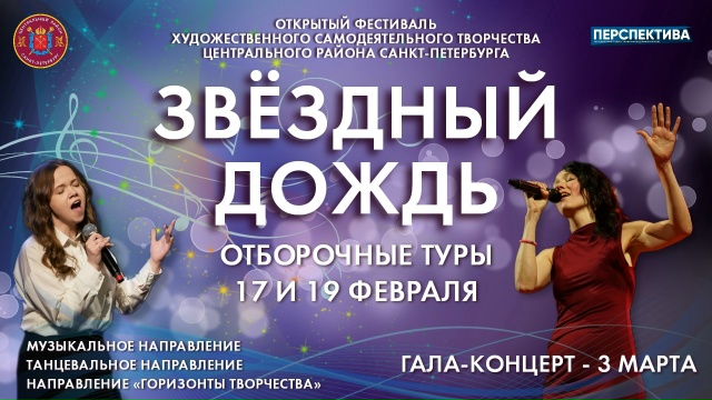 «Перспектива» объявляет старт приёма заявок на открытый фестиваль художественного самодеятельного творчества Центрального района Санкт-Петербурга «Звездный дождь».