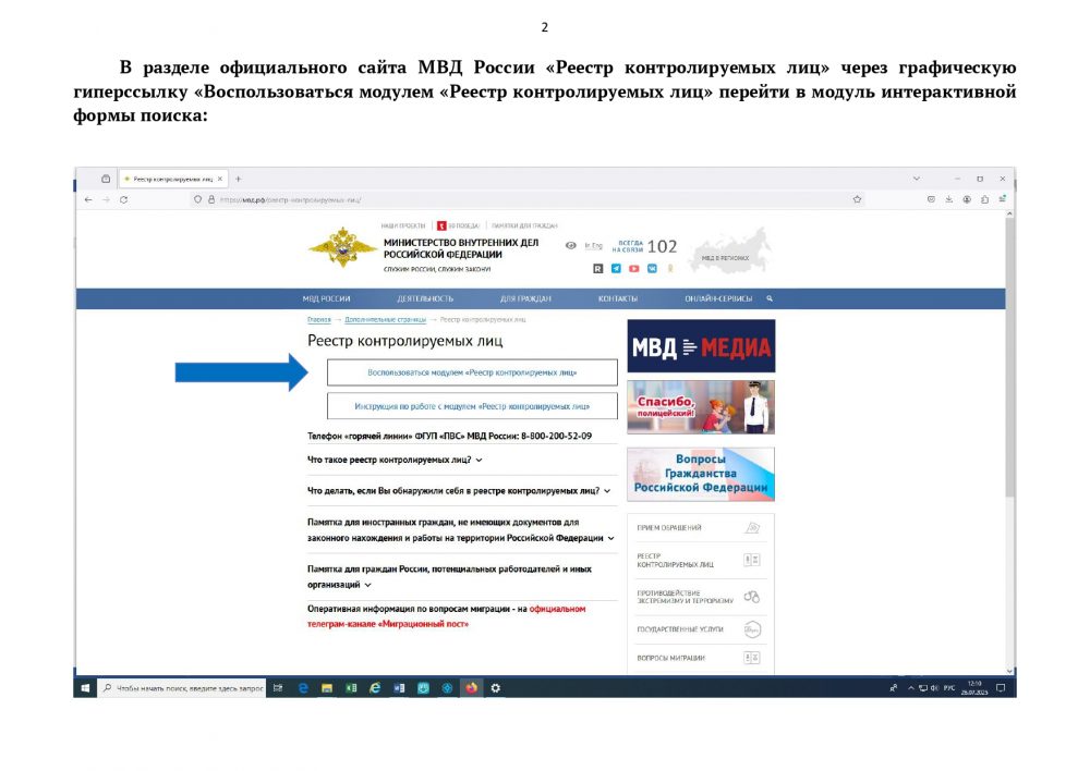 Иностранные граждане, включенные в реестр контролируемых лиц, обязаны выехать из РФ по 10 сентября 2025 года или обратиться для урегулирования своего правового положения в территориальный орган МВД России или в филиал ФГУП «ПВС» МВД России по месту своего нахождения, в ММЦ «Сахарово» (для лиц, пребывающих в г. Москве) (Указ Президента Российской Федерации от 30 декабря 2024 г. № 1126).