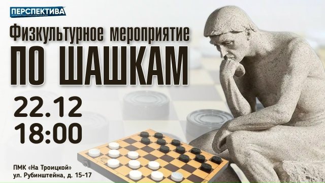 Приглашаем всех любителей интеллектуальной игры принять участие в физкультурном мероприятии по шашкам в молодёжном клубе «На Троицкой» !