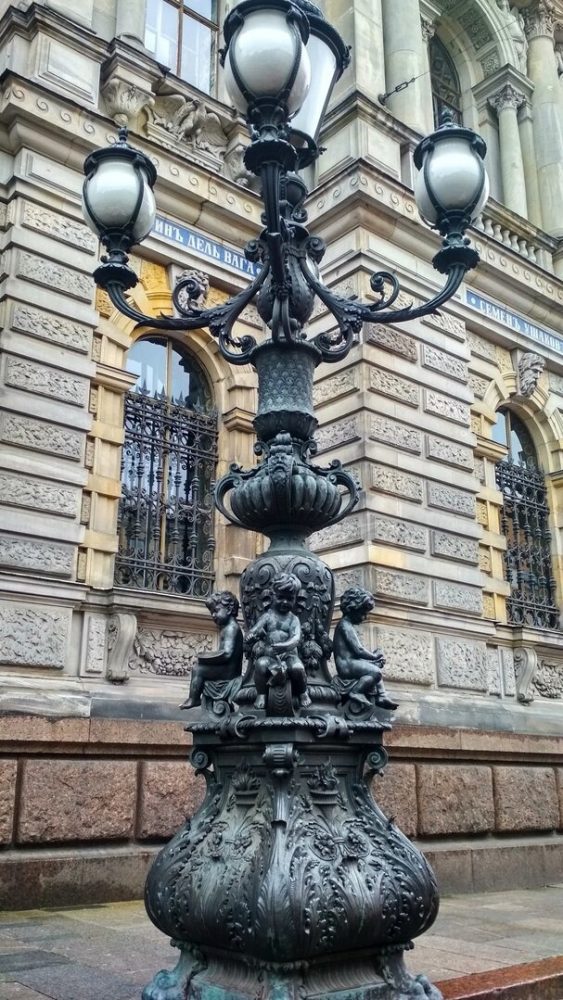 Интересное место: У входа в музей Декоративно‑прикладного искусства при Художественно‑промышленной академии им. А. Л. Штиглица в Соляном переулке стоят фонари‑торшеры, созданные в 1895 году по эскизам архитектора Максимилиана Месмахера. Каждый фонарь украшают фигурки путти (младенцев), олицетворяющих разные виды декоративно‑прикладного искусства: один лепит из глины, другой рисует, третий ваяет скульптуру. Фонари стали своеобразными «ангелами‑хранителями» для студентов академии — перед экзаменами им приносят цветы и ласково трогают их фигурки.