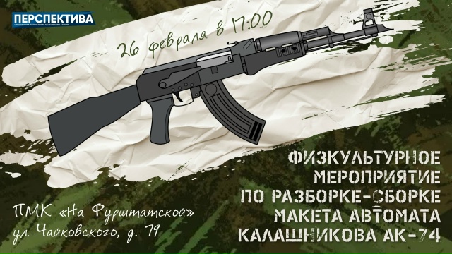 Приглашаем вас на физкультурное мероприятие, где каждый сможет попробовать свои силы в разборке-сборке легендарного автомата Калашникова АК-47 (макет, разумеется!) и снаряжении макета магазина АК-47. Это не только увлекательно, но и полезно для развития моторики, координации и скорости реакции.